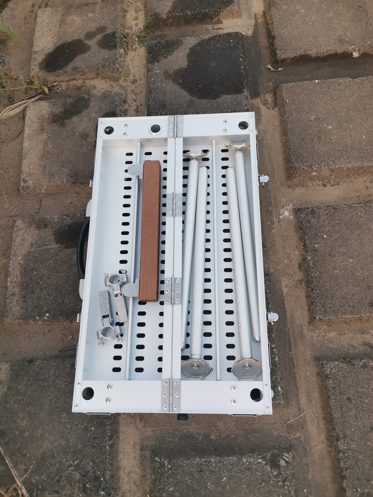 新モデル釣楽工房製アルミ釣台LK-7540Ⅱ型、展開サイズ長さ75cm×横40cm野釣り最適、天板パンチング軽量モデル、4本スライド足、(Ⅱ型はスーパー銀閣の付属全て使用可能、サイドテーブル、エサボール掛け、足など流用可能。)